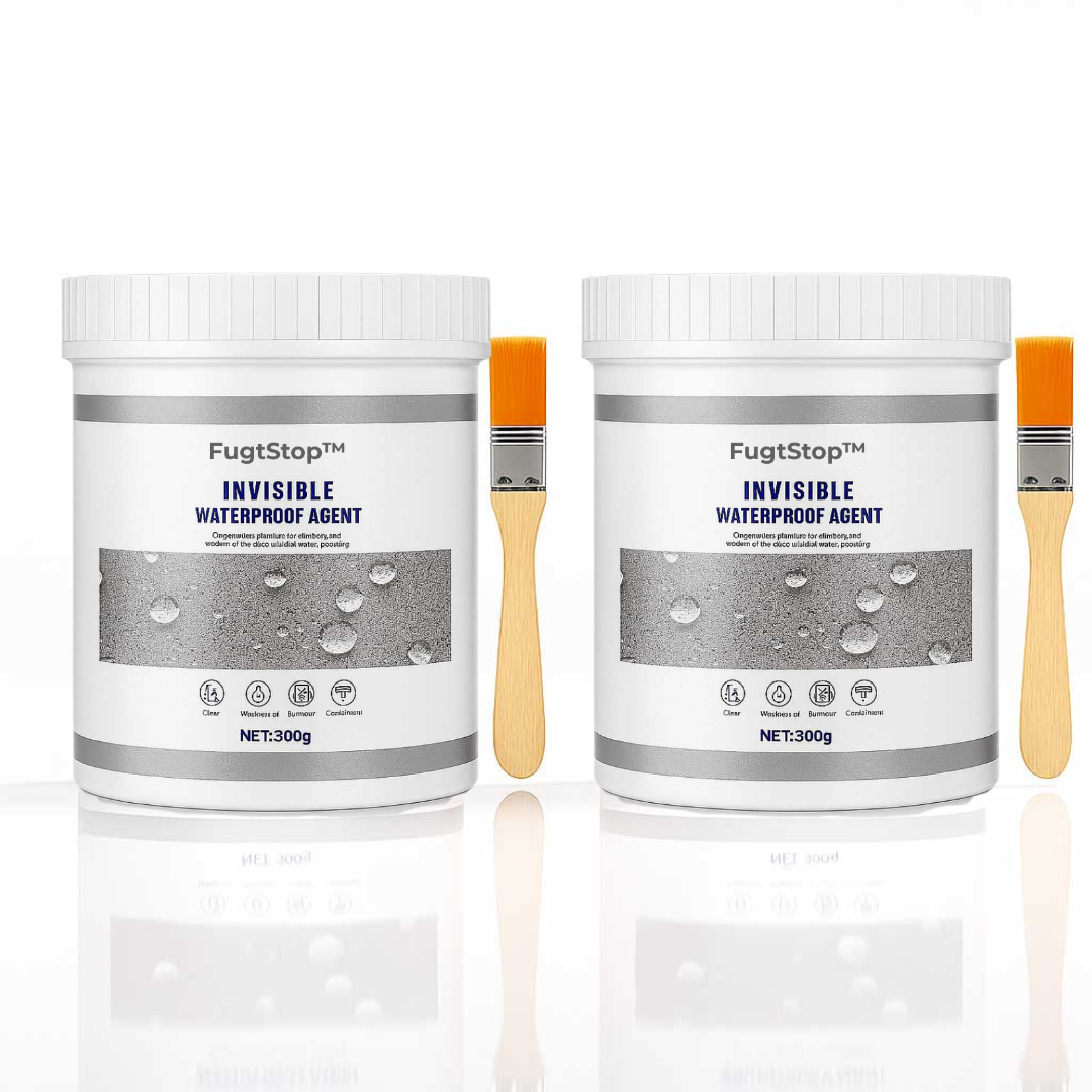 FugtStop fungerer som en gennemsigtig, vandbaseret topcoat, der kan hjælpe med at beskytte overflader mod vandlækage. Det påføres med den medfølgende pensel og kan bruges på flere forskellige typer materialer såsom fliser, træ, beton, metal eller plast.