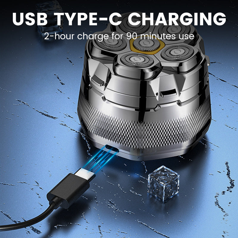 Denne barbermaskine er designet specielt til hovedbarbering og har seks ultraskarpe blade, der arbejder sammen om at fange hvert hår i en enkelt, glat passage for en hurtig og behagelig barbering uden at gå glip af noget.