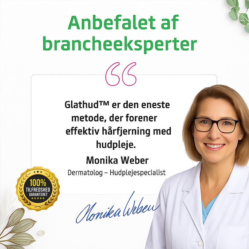 "Mit hagehår var min største usikkerhed. Med Glathud fjernes hårene skånsomt, og min hud føles blød og rolig – ingen rødme eller irritation mere."