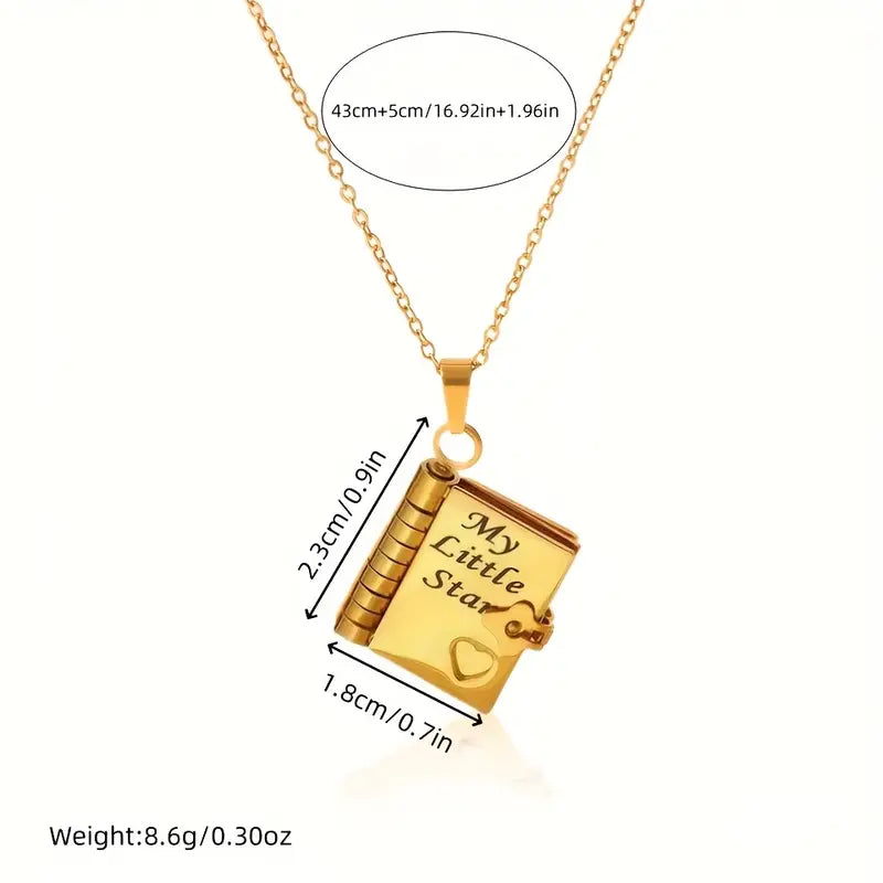 Udtryk din kærlighed på en unik og rørende måde med My Daughter™ – en smuk bogformet halskæde i rustfrit stål med indgravering. Dette håndlavede miniature-smykke er skabt som et evigt minde, din datter kan bære tæt på hjertet for altid.