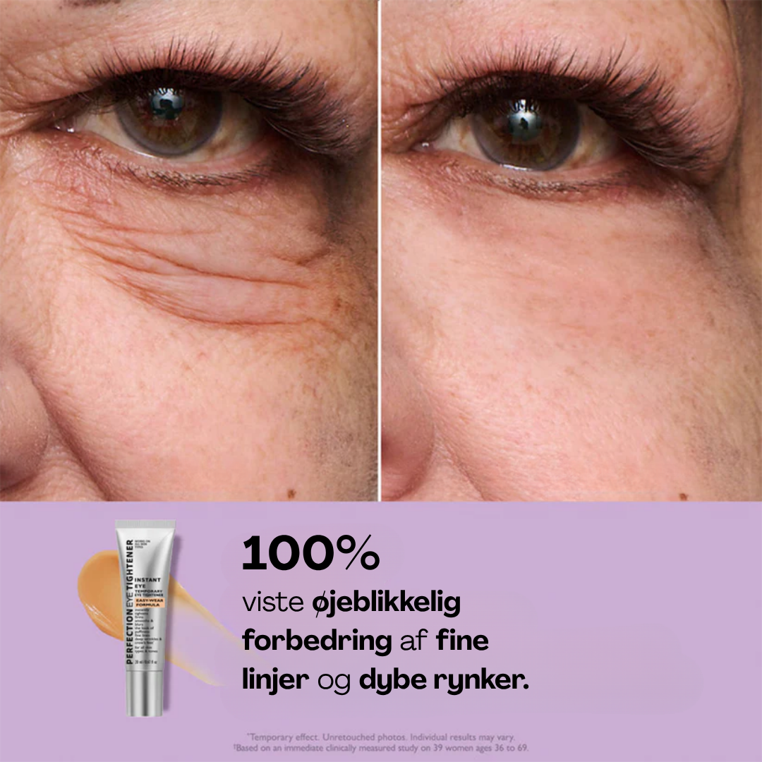 93% oplevede synligt glattere hud under øjnene efter én brug. 90% følte øjenområdet så lysere og friskere ud efter én uge.