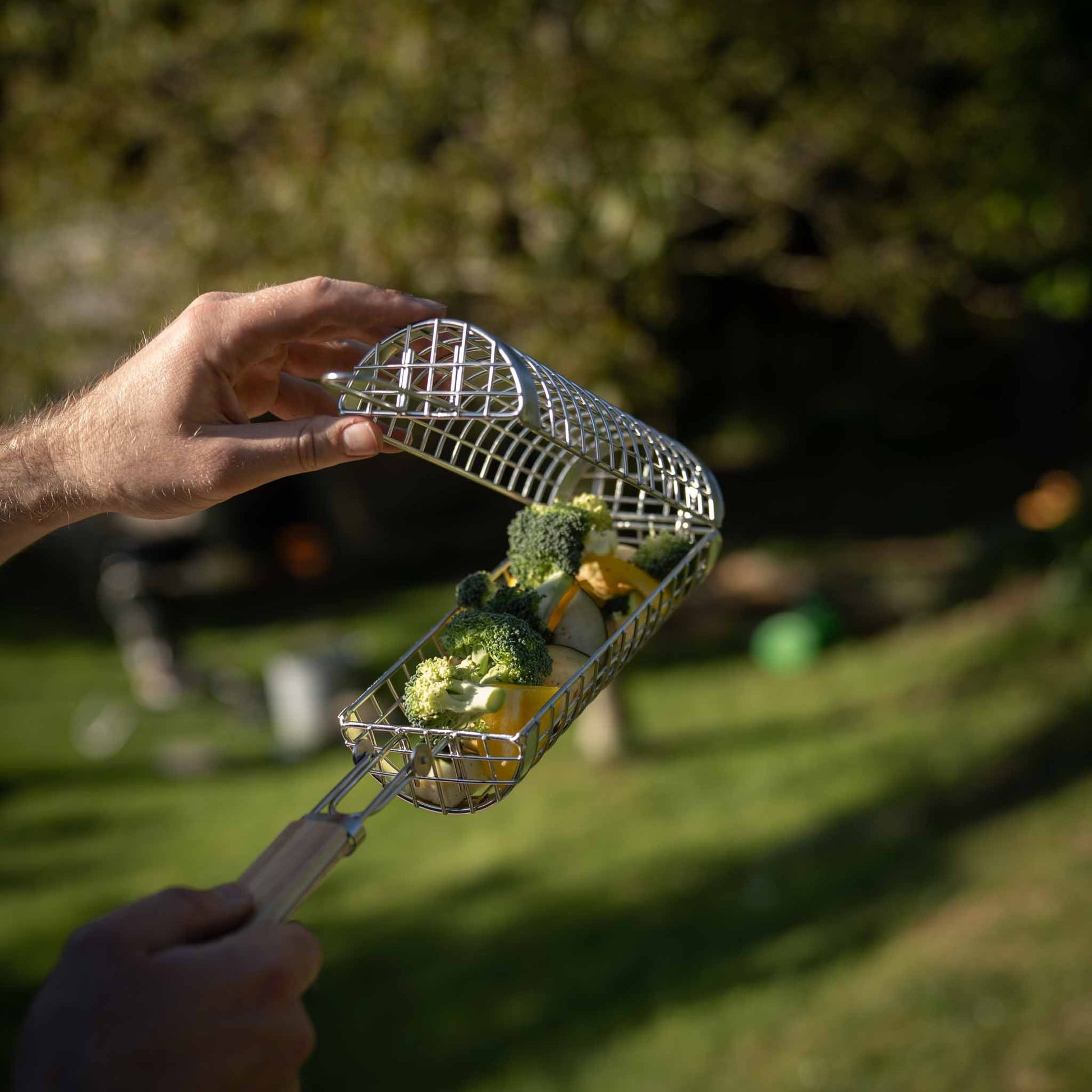 Sig farvel til mad, der falder gennem grillristen eller brænder på den ene side. Så bliver din fisk, dit kød eller dine grøntsager grillet perfekt – endnu nemmere end nogensinde før!