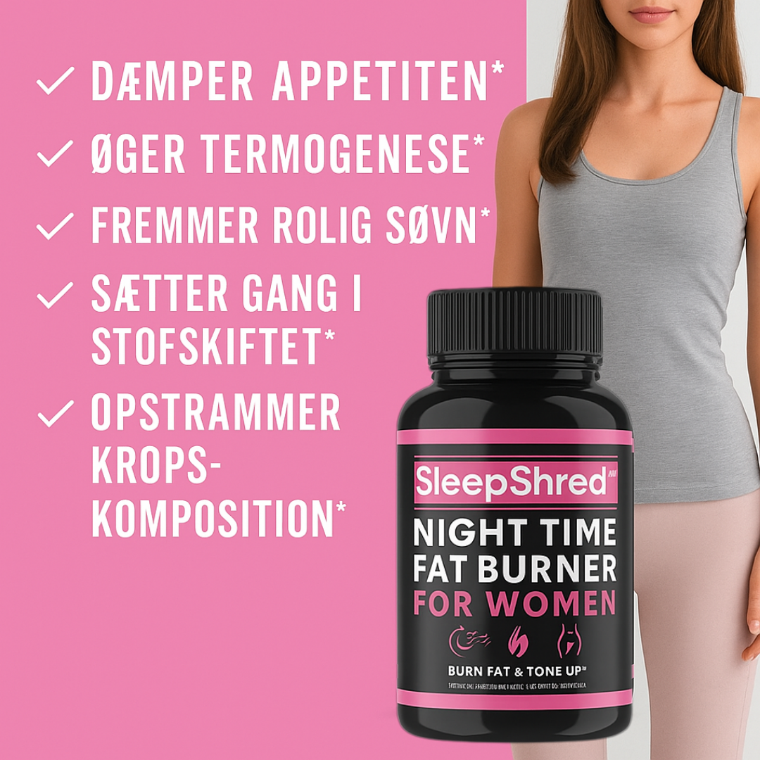 SleepShred™ er en klinisk dokumenteret fedtforbrænder, udviklet specielt til kvinder, der ønsker at tabe sig naturligt og effektivt – mens kroppen får den ro og restitution, den har brug for.