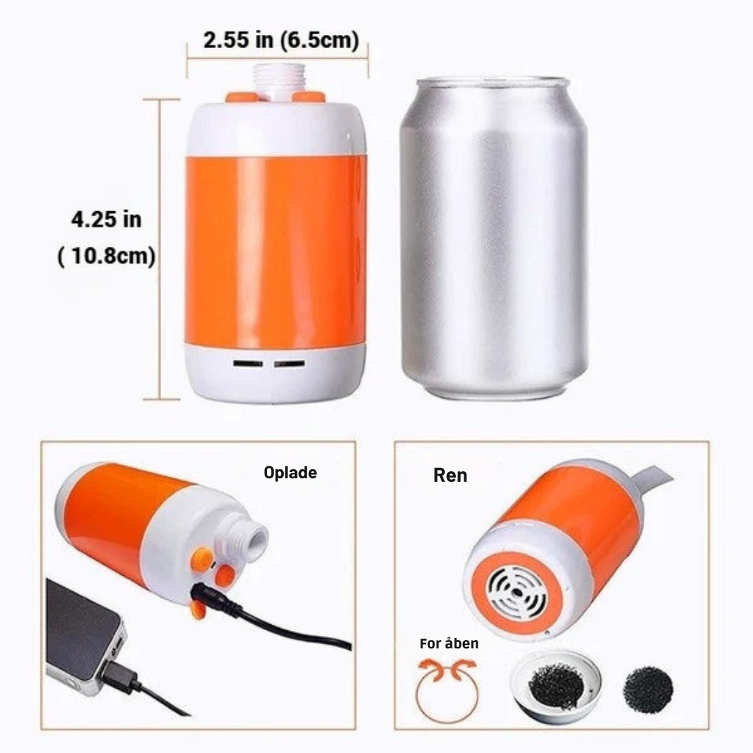 - 1-knaps start: Dyk pumpen i vanddunken, tryk på knappen – klar på sekunder.